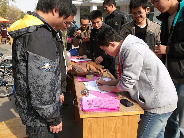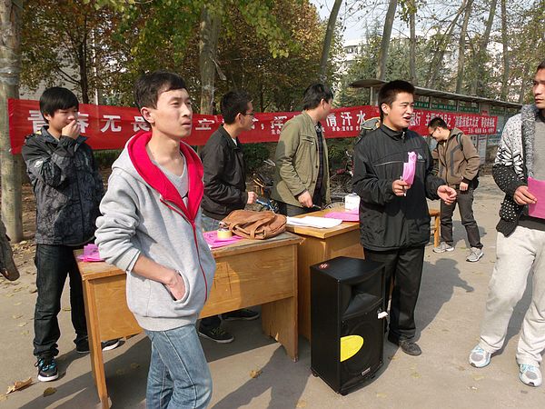 还没到中午,活动负责人就早早来到二餐门口,拉好宣传条幅,摆好桌子,分发宣传单,宣传工作有条不紊的进行着。活动负责人说,“此次活动旨在通过智力才艺展示,寻找关卡和参与游戏锻炼让参与者快速融入集体的能力和团队协作精神。在大公司园里,很少能够有放松身心的集体活动,我们想举办一个活动,能够让同学们找回过去的乐趣,品味生活的另一种情趣。”随着下课铃声的响起,二餐门口的人也渐渐多了起来,各负责人卖力的宣传,同学们自发报名。首日宣传,效果不错。