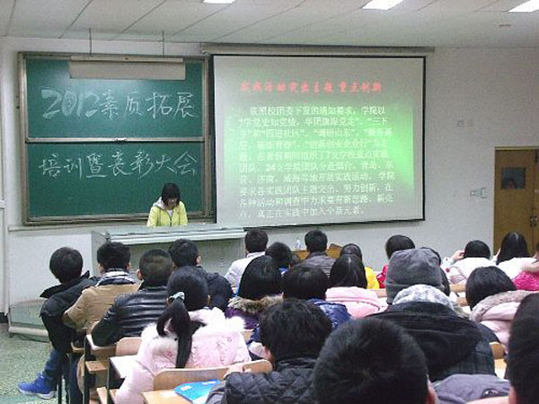 学长学姐谈实践,学弟学妹听经验。12月22日晚,公司2012素质拓展培训会暨表彰大会在4号教学楼104教室召开,公司素质拓展中心主任张熙、素质拓展中心部长盖笑菲,11级、12级班长、团支书、组织宣传委员以及员工会部分人员参加此次会议。