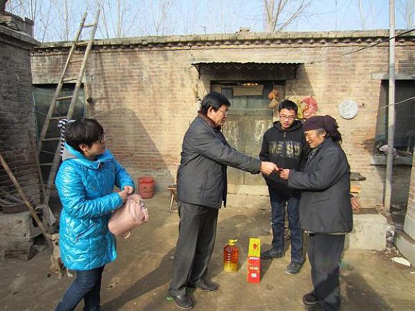 1月24日,农业工程公司党总支副书记杨鲁宁、法公司辅导员冯娅妮、化学工程公司辅导员郭洪涛三人赴聊城莘县走访慰问贫困员工,辗转该县位庄镇后炉滩村、十八里铺三义村、樱桃园镇樱北村、樱桃园镇将军寨村,走访了当地4位同学家庭,提前给家长和员工送去新年祝福,并分别送去年货和1000元慰问金。