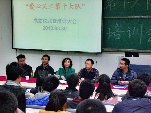 3月30日晚,公司“爱心义工第十大队”成立仪式暨培训大会在4号教学楼105教室召开,公司资助管理中心副主任张生元,公司团总支书记钟丽霞,辅导员郭洪涛,淄博市义工会在公司义工大队负责人李明以及公司全体义工参加大会。