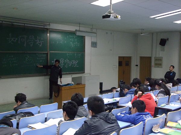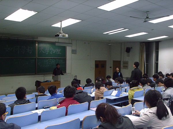 此次交流会旨在促进同学们学习大学物理的积极性,传授经验与方法。活动伊始,郭洪涛以其诙谐幽默的开场白活跃了现场气氛。随后,孟庆宽首先解读了同学们在大学物理学习方面所存在的误区,他说课上只要听懂三分之一即可,要讲求重点的把握。郭洪涛也补充说道,还要实行小学的学习方法:课前深入预习、课上听重点、课下及时复习。在谈到构建知识框架时,他要求大家要重视基础,平常多思考各物理章节之间的联系,正所谓“基础不牢,地动山摇”。问答环节中,孟庆宽就同学们在大物各具体章节所提出的问题进行了答疑,并对各章节的重点知识进行了勾画。最后,活动在热烈的掌声中结束。