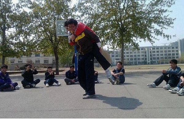 此次活动旨在加强班级凝聚力,同时在欢乐中得到锻炼。活动方式新颖独特,欢乐气氛浓郁。活动伊始,由该班班长和团支书进行主持,经过简单的活动介绍,同学们积极投入到活动中。其中一项活动名为“砸龙尾”,全班同学分为两队,一队是“龙”,另一队用篮球砸直至将全部的同学砸下后,双方互换角色用时最短的队伍获胜。游戏中同学们分工合作,获得了极大地乐趣。接下来还进行了“接数字”、“贴锅饼”“警察抓小偷”等趣味性十足的游戏,活动中同学们不时的失误逗得大家笑声不断。最后,活动在阵阵欢笑声中结束,主持人动情的说道:“今天我们在一起,我们是一家人。”