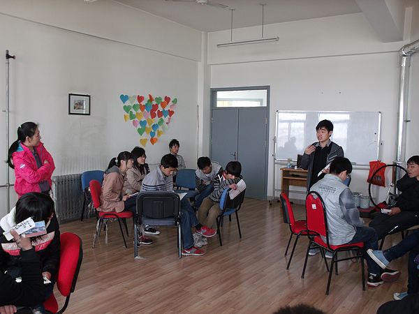 活动邀请了心理辅导师尹老师,此番心理培训尹老师没有泛泛地讲解心理知识与案例,而是通过三个简短有趣的小游戏并加以适当的提点与指导达到了心理培训的目的。第一个游戏是“你喜不喜欢我”,此活动笑料百出,在同学们斗智斗勇的过程中,将同学们最初的拘谨统统消除,从心理上让同学们在接下来的活动中完全放松下来。第二个游戏是“自画像”,此环节尹老师要求同学们画出心目中的自己,然后分组讨论并且每组选出两名同学讲解自己的自画像,这个环节同学们各发其长,有人画的月亮,寓意现在的自己还是在反射别人的光芒,感恩别人、感谢生活;有人画的四叶草,总结自己经历过的四个阶段,懂得了豁达与释然;有的则从现实出发,只是简单的希望自己能有个美满的家庭,能有份舒心安逸的生活:这个环节,让同学们在娱乐喧嚣后开始静静的思考自己的人生,让其对自己的未来有了一份更清晰的认知和规划。同时,老师就这其中同学发言所带来的启示给大家做了详细深入的分析,使大家真正意义上了解了自己。第三个游戏则是考验团队精神的“彩虹桥”,男女生互相搭配合作最终成功搭成了由十八个人组成的‘彩虹桥’,将活动引向最高潮。活动在最后的排列心形队列合影中结束,同学们面带收获的微笑走出来教室。