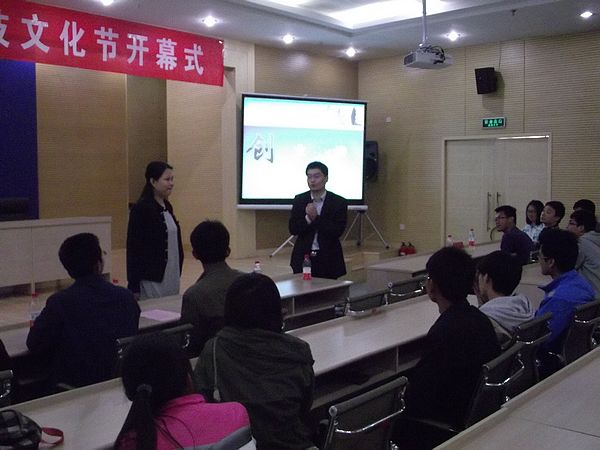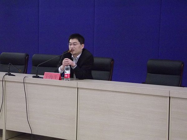 4月27日,开幕式余热仍在,首届化学科技文化节之英科创业论坛在西校区图书馆报告厅举行,山东英科医疗制品有限公司副总经理于海生就企业用人机制与同学们亲切交流。