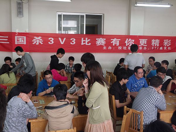 边锋全国的益智桌游“三国杀”作为承载三国文化最好的游戏载体,现今再度来袭! 5月19日,由校社联主办,公司FTF卓友社承办的“三国杀3V3争霸赛”在13号教学楼401火热开赛。