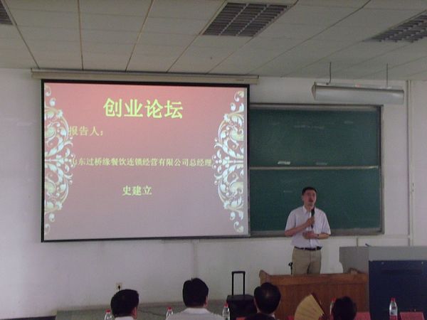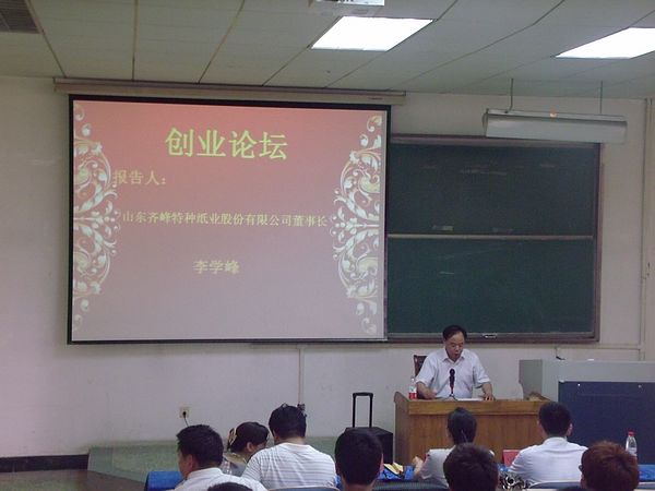 5月23日下午,由淄博市工商联、校团委主办,公司承办的化学科技文化节创业论坛之民营企业家进校园活动举行在4号教学楼201教室举行,报告会邀请到山东过桥缘餐饮连锁经营有限公司总经理史建立、山东齐峰特种纸业股份有限公司董事长李学峰为同学们浅谈自己的创业史,公司党总支副书记李冰强参与报告会,报告会由公司团总支书记钟丽霞主持。
