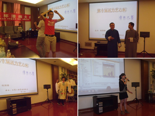 比赛间隙,工作人员则为大家安排了精彩的文艺节目,以缓解大家的疲劳。一曲积极励志的流行歌曲《我是一只小小鸟》博得了在场观众经久不息的掌声,神秘而又带着幽默的“刘谦式”魔术吊足了观众胃口,昆曲《牡丹亭》则将大家带入了古典淡雅的元朝盛世。最受大家欢迎的则是由朱红彬、陈凯强带来的传统曲艺节目相声《打灯谜》,一个个恰到好处的“包袱儿”,专业熟稔的表演,使得观众大呼过瘾。在此期间,工作人员紧锣密鼓的将各组选手的成绩加以统计,活动最后,主持人公布了成绩并宣布大赛正式结束。
