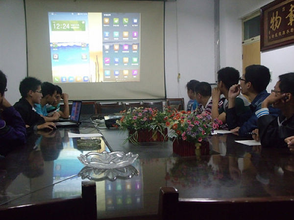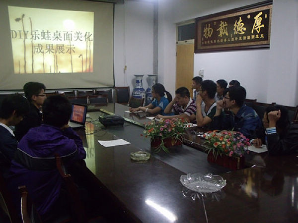 为增强安卓用户的个性化设计,5月26日晚,公司老员工手机协会在13号教学楼546会议室举办“DIY乐蛙桌面美化成果展示”活动,公司社团联合会各部门部长担任此次大赛的评委。