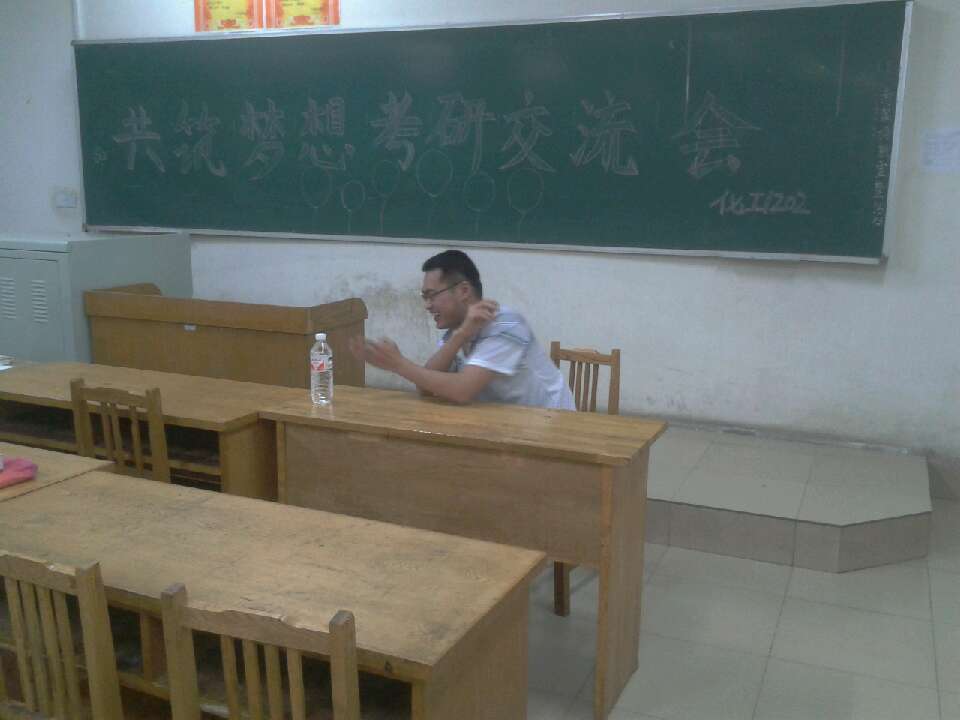 在主持人简短的介绍之后,曹仲良直接切入主题,他提到,考研是他人生中一段无法抹去的铿锵岁月。不少人说考研是痛苦的,很少有人说考研是快乐的。然而,无论是痛苦还是快乐,经历过的人都会把曾经的苦与乐看成是自己走向成熟的一段经历,一种克服人生困境的能力和一笔无形的宝贵财富。一路走来,会使自己学会承受和容忍,也会学会坚强与坚持。那是一段为梦想而奋斗的日子,是人生美好的东西,值得珍惜。同时,他对同学们说,一旦决定考研,最先面对的问题就是选择公司,公司选取的正确与否,在某方面将决定着考研成败,所以,选取公司一定要慎重。交流会上,曹仲良对于同学们提出的关于复习和考试的方法等问题,结合自身经验做了详细的回答,博得了同学们的阵阵掌声。