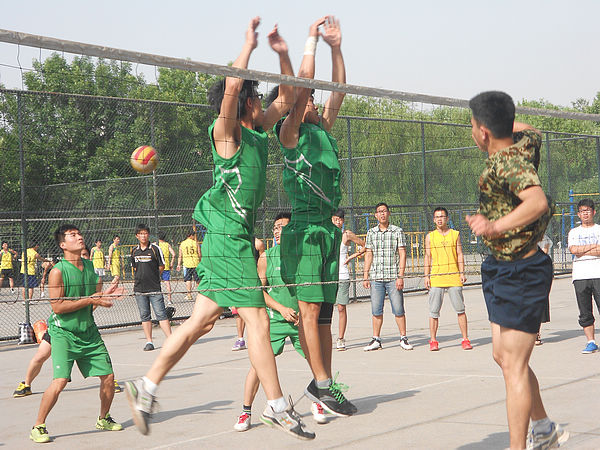 此次比赛,可谓是是公司迎战的最强劲的队伍之一,比赛显得异常激烈。比赛刚开局,国防队员夺了先机,打出了4:0的小高潮,将比分首度拉开。公司队员在短暂的适应后,开始奋力反扑,一系列熟练地传球、扣球一度将比分拉平直至反超,虽然对方组织了一系列的反攻,但仍未将比分拉平,公司的优势一直持续到第一局比赛结束,最终以25:19的成绩拿下第一局比赛。第二局比赛开始,国防队先声夺人,拿下了首球,公司队员在短暂适应后,奋起反击,一举将比分反超,然而对手也毫不松懈,对方专业教练抓住公司队员对比赛需要短暂的适应的劣势,比赛期间多次叫停,使公司队员无法充分发挥优势,最终国防队以4分之差险拿下第二局比赛。