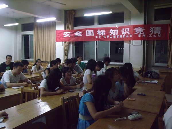 为提高同学们的安全意识,使其有个安全愉快的暑假,6月15日晚,由公司团总支主办,艺心社承办的安全图标知识竞猜活动在13号教学楼405教室举行。