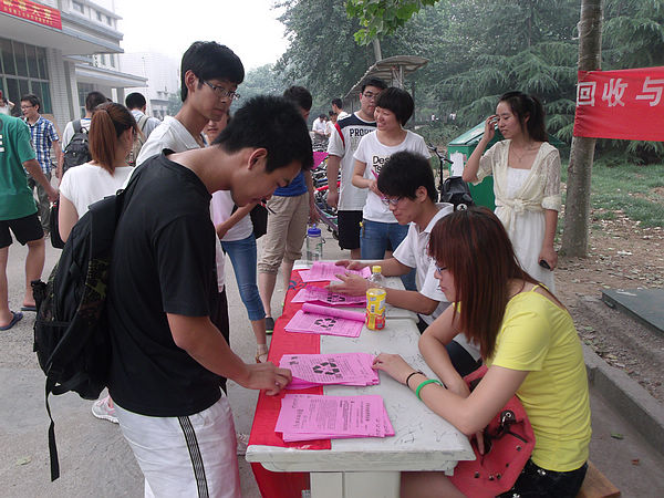 此次活动旨在增强同学们节约资源保护环境的忧患意识,创造低碳生活。废旧电池的危害巨大,一节纽扣电池能污染60万升水;一节一号电池烂在地里能使一平方米的土地失去利用价值。无论从消除污染角度还是从回收资源利用角度,废旧电池回收意义重大。公司义工以其实际行动来宣传废旧电池回收,手中一只爱心笔,耐心详细的介绍,使过往的同学纷纷在条幅上签下自己对环保低碳的感悟心语。炎炎烈日下,义工们坚持将每一份公益理念贯穿到同学们之中,使此次宣传活动顺利进行。