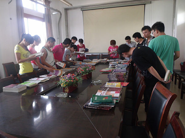 活动伊始,郭洪涛老师对各年级前来领取书籍的同学表示欢迎,他介绍说:“从‘爱心漂流瓶’计划启动以来,活动得到各方的鼎力支持,到目前为止,接受捐赠的各类书籍达到五百多本,请各位同学快乐挑选,认真汲取科学知识,然后,把这件有意义的活动传递下去……”。接着,同学们就开始围着桌子挑选起自己喜欢的书籍。有的同学翻看着自己想要的书,捧着一本读半天;有的则是实用型,专挑各科辅导书;有的同学对英语读物和励志读物很感兴趣,一口气挑了两三本。在领书的两个小时里,会议室里的人络绎不绝,最后捐赠的五百余本书所剩无几。