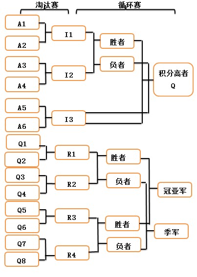 本次比赛采用先淘汰,再循环,再淘汰的方法决出冠、亚、季军。比赛流程表如图所示。本次化工杯迎新篮球赛参赛一共有46支队伍,并抽签决定分为A、B、C、D、E、F、G、H八组。其中A、B、C、D、E、F、G组是每组6支队伍,H组是4支队伍。比赛时间、地点再另行通知。