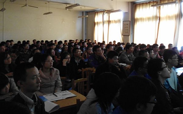 此次招聘会预计招聘103人,公司招聘的人数居多。面试共分为两个环节:主题宣讲和面试。宣讲主要包括公司简介、人才招聘要求、薪资和福利待遇等方面。东岳集团魏主任为同学进行了宣讲,她讲到东岳集团作为亚洲规模最大的氟硅材料研发生产基地、中国氟硅行业的龙头企业,在新环保、新材料、新能源等领域具有突出成绩,先后荣获中国驰名商标、中国名牌、全国五一劳动奖状等荣誉。公司施资力量雄厚,发展情景广阔。在讲到东岳人才理念时她直接用李克强总理专门为公司所概括“以效益体现价值,用财富回报才智”进行了概述,同时,在同学们关心的薪资待遇和福利待遇方面她也进行了详细的介绍。紧接着是笔试环节,但是由于人数过多,笔试分别在401、402教室举行。笔试开始就业服务部干事协助东岳集团招聘人员按专业分发试题。考试开始后教室里很寂静,同学们很快进入考试状态,开始认真作答。