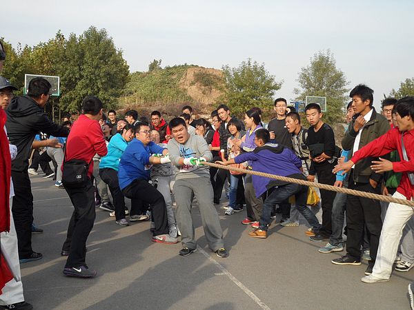 在拔河比赛开赛前,公司老师组织队员进行战略战术指导,每个队员都戴上了胶皮手套,以防麻绳对手的磨伤,同时也增打与绳子之间的摩擦。16进8,8进4的比赛中,公司员工齐心协力,在队员们“一二、一二”的口号声及啦啦队大声的加油助威声中,公司队员表现突出的表现顺利晋级。每场比赛过后,有专门人员为参赛队员揉肩放松。公司队员凭借强硬的实力一路斩杀进四强。在4强的排名赛中遇上强敌,止步四强。此次拔河比赛,不仅加强了同学的团队协作能力,更培养了同学们奋勇拼搏的精神及乐观向上的生活态度。