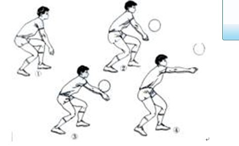 每队派3组队员参加(至少2名女队员)。每队进行排球垫球传球,垫球可采取如下图方式,中途若排球落地,即为失败,三队队员垫球数量之和为该队得分。