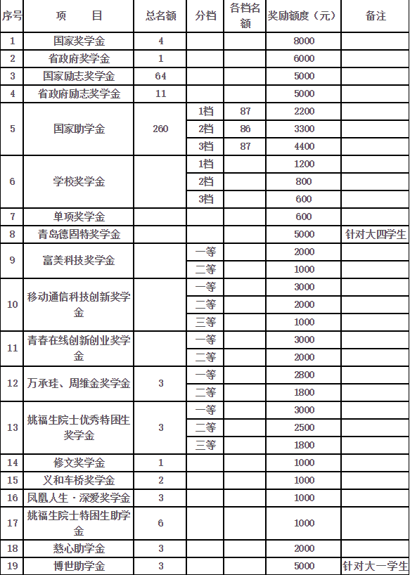 (一)国家奖学金、省政府奖学金