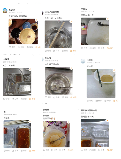 9月21日—27日,为了落实习近平总书记对制止餐饮浪费行为重要指示的教育活动,w88win体育官网入口员工第三党支部开展了“光盘行动”打卡活动。此次打卡在微信小程序上进行。