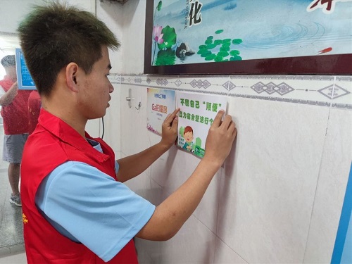 志愿者们分工合作,在教学楼的志愿者们将标语张贴在空调、风扇和洗手间处,提醒同学们使用空调时要提高空调温度、无人时关闭电源开关、节约水资源;在宿舍楼的志愿者们将标语张贴在楼道及卫生间处,提醒同学们随手将垃圾带出宿舍,营造良好的宿舍环境。在张贴环保标语的过程中,志愿者们也通过活动不断提升自己的能力,也纷纷表示:未来将更加提升自己的环保意识,努力争做新时代的文明青年人。