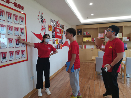 在讲解员张婷的带领下,团队成员参观了党建文化墙,张婷提到,东篱居通过完备成熟的党建工作法即一三五二党建工作法,形成以党支部为核心,以员工群众代表及党员大会、住民自治委员会为主体,为党的全面发展奠定更牢固的基础,其中,独具特色的住民自治委员为当地首创,保障了公寓居民能够享有绝对的权利,让入住长者参与到公寓的管理之中,提出建议,真正践行服务人民的宗旨。