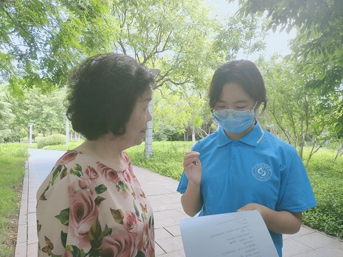 上午九点团队成员来到淄博植物园南门,队长分发调查问卷,并做出简单任务部署。队长指出:“团队本次外出调研代表山东理工大学形象,在采访时应当注意礼貌用语。”团队成员在路边寻找在植物园锻炼身体的群众,简单介绍后便开始对其进行采访。群众们得知团队来自山东理工大学表现出高涨的热情,积极配合采访。