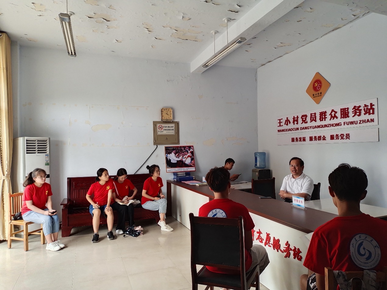 7月18日下午,山东理工大学踏青实践团全体成员在东夏镇综合文化服务中心对王小村党支部书记王云进行采访,并一同参观王小社区。