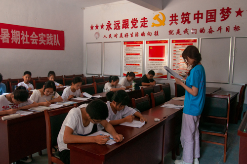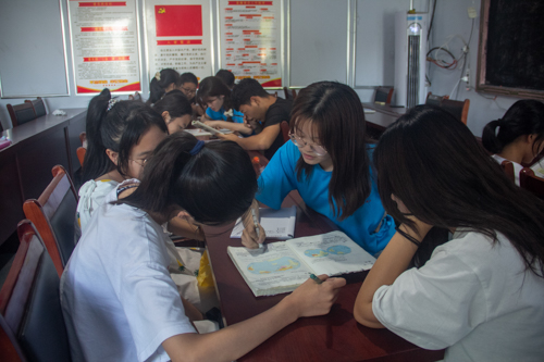 最后一节课志愿者对在场员工进行一对一(部分一对多)作业辅导,志愿者为其辅导功课,针对假期作业中的疑难问题进行讲解,传授解题方法,鼓励村内员工尽自己的知识能力攻克难题,同时帮助他们理顺每天的学习计划,提高自律能力,养成良好学习习惯。