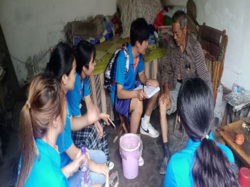 成员们向村民们打听了孤寡老人的住处,村民们知道团队成员此次来访的目的之后积极配合实践团的工作。之后成员们到达了当地超市,准备好赠送给老人的物品。