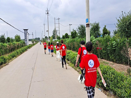 图为踏青实践团成员在前往益都赤涧支前粮站的路途中