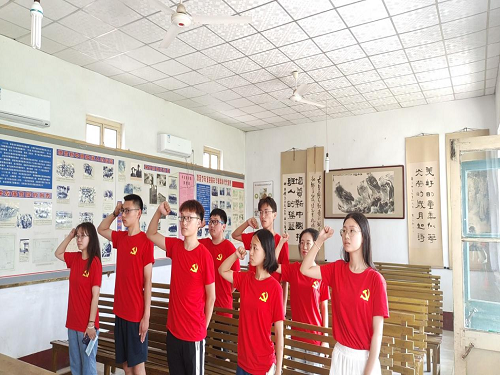 随后,团队成员来到华东保育院纪念室,站在党旗前庄严宣誓:“我们坚决以爱国主义武装我们的头脑,心系民族命运,心系国家发展。我们将努力学习,适应时代发展的要求,正确认识祖国的历史和现实,树立民族自尊心与自信心,继承先烈遗志,发扬革命传统,弘扬伟大的中华民族精神,真正把爱国之志变成报国之行!”