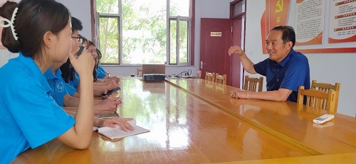 下午,实践团队全体成员和赵东强在中郝峪村村委会办公室进行交流,团队负责人首先对本团队成员基本信息及实践目的进行简短介绍,赵东强也对团队的到来表示欢迎。随后,团队成员询问赵东强关于中郝峪村的发展历史、管理模式、经济状况等大家关心的问题。赵东强还讲述他的个人经历,从小时候吃百家饭长大的苦日子,到长大后努力打拼赚钱赡养家人的甜日子,赵东强变得成熟,这使得后来村民信任他,多次请他出任中郝峪村书记。他自上任以来,带着村民搞经济,谋出路,大力发展旅游业,让游客走进来,把水果卖出去,让中郝峪村在全面脱贫之前就已经实现全村脱贫。