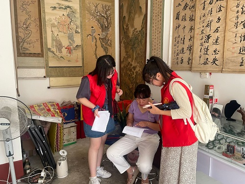 随后,实践团对游客开展调研,了解游客是从什么渠道知道古城的、以什么方式前往古城游玩、对古城的印象等。据了解,游客多为本地人,其他大部分人为员工或有孩子在青州上学的。小部分人为外地游客,跟随旅游团或被青州古城古色古香的街道吸引而来。