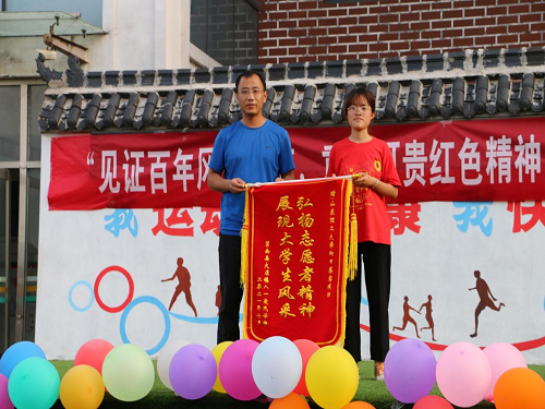 7月22日,中午,山东理工大学思想政治课老师何莹、张秋旭来到莒南县大店镇指导“向日葵”暑期社会实践团工作。与实践团队共同参观山东省政府旧址暨115师驻地,并参加“见证百年风云巨变,重温可贵红色精神”文艺汇演,八一爱民小学董事长季维强镇团委书记徐瑞全程参与。