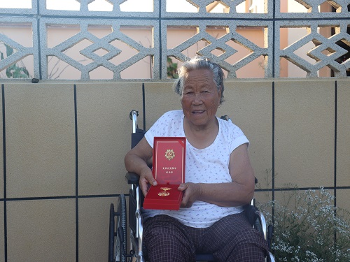 在队员和奶奶热烈交流时,奶奶提到了她曾获得过奖章。在征求奶奶的同意后家属拿出了奶奶的奖章,奖章上闪烁着耀眼的金色,尽管年代久远但仍煜煜生辉。