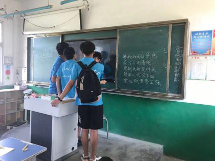 下午,实践团队来到了当地化马湾小学,小学一共五个年级,每个年级分配了两名队员给小员工们开一场关于水资源的讲座,下午三点,团队成员一一就位,团队成员一起商量做成的ppt,既可爱又通俗易懂。当拷完之后,每个年级分别有了自己的老师。