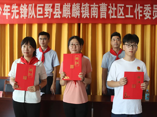 少工委主任由巨野县麒麟镇南曹社区党委书记曹金强担任,少工委委员由团支部书记刘士磊和霞光小学董事长刘新军担任,聘任省妇联派驻南曹社区选调生孙玉婷、麒麟镇中心小学、佳信小学辅导员付慧卿、小太阳服务队志愿者为少工委少先队辅导员,并派发聘请书。仪式由麒麟镇团委苑丹丹主持。