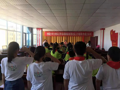 为进一步落实《中共中央关于全面加强新时代少先队工作的意见》文件精神,拓展少先队组织建设,团县委、县少工委决定在麒麟镇南曹社区成立少工委。7月26日,小荷学堂服务地南曹村举行少工委成立仪式。本次参加人员有:团县委、县少工委相关负责人、麒麟镇团委负责人及小太阳服务队的志愿者们。