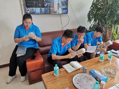 随后,实践团来到临沭县秀涛粉制品厂、临沭县鲁蒙粉制品厂。秀涛粉制品厂成立于2001年,有完整、科学的质量管理体系,公司产品原料选取天然红薯淀粉,采用精湛的传统工艺、科学配料、现代化精细加工凭借诚信和过硬的产