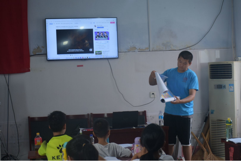 7月30日,实践团成员展开《经典诵读》《趣味地理》《魅力音乐》等7门特色课程。经典诵读老师改变教学方式,将古诗背诵转化为音乐,用唱的方式来进行古诗词的传授。在最后一节地理课上,实践团成员给踊跃回答问题的孩子准备中国地图等礼物,奖励孩子积极地回答问题,让他们在收获礼物的同时收获地理知识。在音乐课上,老师带领同学们合唱《追梦赤子心》,在教授音乐知识的同时,教导孩子们学会坚持与勇敢,鼓励孩子们树立梦想、追逐梦想。