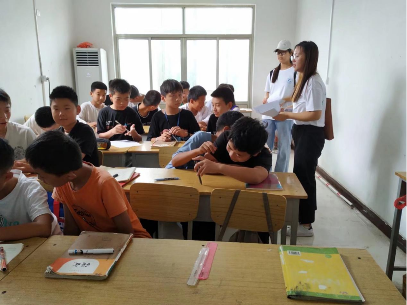 随后,实践团队成员对韩集乡暑假培训班员工进行东昌葫芦雕刻非遗手工艺知识宣讲。在对暑期培训班的孩子进行宣讲时,孩子们虽然一开始对东昌葫芦雕刻感到很陌生,但当实践团成员为他们拓展了“什么是非物质文化遗产”,“中国目前已经申请了多少项非物质文化遗产,聊城的国家级非物质文化遗产又在其中占了几项”时,孩子们眼里的星光随着实践团成员的讲解而愈加璀璨。实践团队成员感受到孩子们为自己身处五千年历史文明拥有如此多的瑰宝而骄傲自豪,又体会到孩子们对于自己脚下所矗立的这片黄土大地的优秀文明成果被其它国家而剽窃的愤慨。实践团队成员有理由相信在这一张张富有生气的小脸下,非遗传承的种子已经悄然播下,接下来就只需等待时间的酝酿,静待花开。