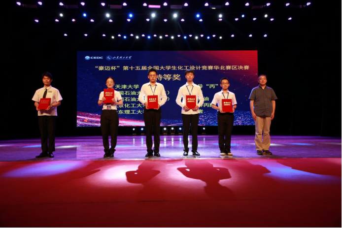 8月1日上午,大赛决赛举行,通过专家作品评审和答辩评审环节,最终评选出天津大学天赋异“丙”团队等华北赛区特等奖10个、天津大学出乎异料团队等最佳设计文档质量奖3个、天津大学天赋异“丙”团队等最佳工程图纸质量奖3个、中国石油大学(华东)八月天团队等最佳现代设计方法奖3个。河北农业大学渤海校区、山东理工大学、河北大学分别荣获最佳组织奖、突出贡献奖、最佳突破奖。竞赛期间提出了一系列实现异丙醇绿色生产的先进技术方案,为改进我国现有异丙醇生产工艺和装备技术提供了新思路、新方法、新模式,也极大锻炼了同学们运用化学工程知识解决实际问题的能力。