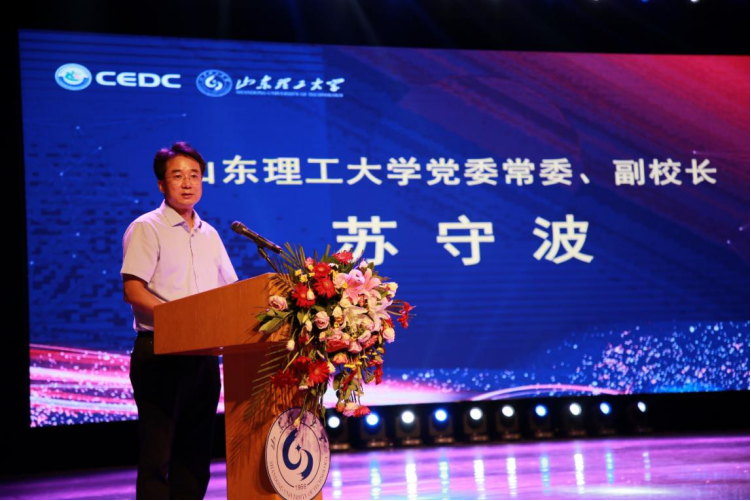 王勤波博士发表讲话。他代表豪迈集团向大赛的顺利举行表示热烈的祝贺,并简单介绍了豪迈集团核心理念和企业发展历程。他讲到,2020年,豪迈集团在实现逆势增长20%后,化工连续流技术、高效节能换热器、高效节能压缩机等多个领域正在向着世界一流冲击。他指出,山东理工大学是豪迈集团校企合作重点院校,期待双方继续强强联合,展开更全面、更深入的合作。