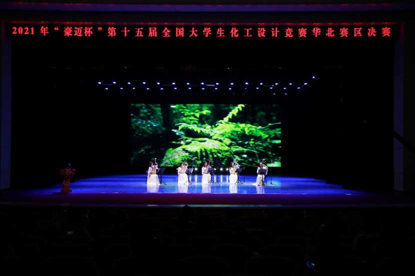 山东理工大学音乐公司师生为参赛代表奉献了一场精彩的文艺演出。现场氛围热烈,掌声不断。