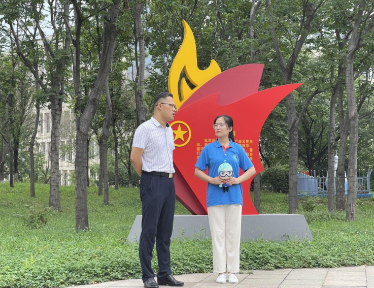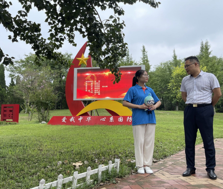 习近平总书记强调指出:“我们的军队是人民军队,我们的国防是全民国防”。在大公司园内建设国防教育阵地,是落实国防教育进校园的重要举措,同时引导广大群众特别是青年员工主动了解国防知识,增强国防观念。基于对红色讲解员现状的调研,为弘扬身边的红色文化,传承红色精神,“昇韵”社会实践团队化身红色讲解员,将山东理工大学国防教育园选作了解红色文化知识与红色讲解员的首要阵地。2021年8月13日“昇韵”社会实践团队在进行充分的彩排和准备后,以微团课的形式展开了对山东理工大学国防教育主题园红色讲解员韩智利老师正式的采访。