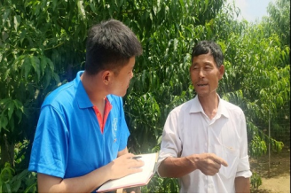 图2.实践团队长崔学通询问农场主桃子生长过程的注意事项