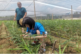 图1.团队成员观察生姜,向农场主询问生姜过程中的注意事项