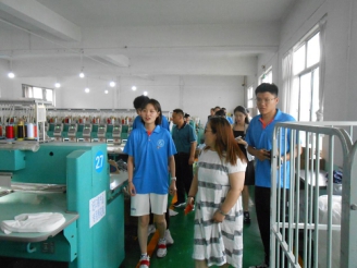 图3.实践团成员参观印花车间了解纺织产品制作过程