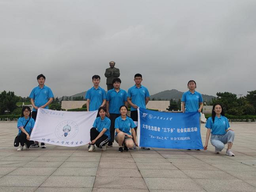 其次,实践团队前往毛泽东主题广场,领略毛泽东主席对厉家寨的深刻影响。通过参观毛泽东主题广场,团队了解到,毛主席曾对厉家寨的农业生产亲笔批示:“愚公移山,改造中国,厉家寨是一个好例”。书记讲道,毛主席短短二十几字的批示,不仅成为厉家寨人最珍贵的记忆,更成为一笔发展经济文化事业的宝贵财富,毛泽东主题广场也由此建成。厉家寨以红色旅游为载体,立足实际,在万亩梯田和山坡崖畔全部进行樱桃栽植。让游客在采摘樱桃的同时感受当年厉家寨人民整山治水的万丈豪情。