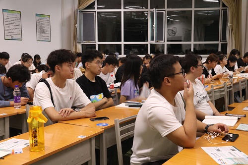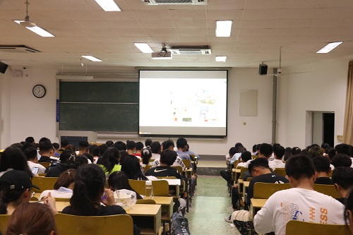 随后,观看视频,走进最美辅导员——王晓东的故事。他强调道,大学期间,应培养事业心与格局心。不同的视野,不同的角度,会有不同的风景。他勉励同学们:“你的格局有多大,你以后的人生就有多广阔。”